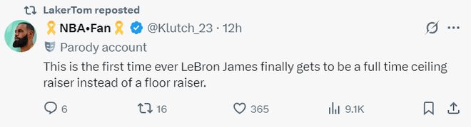 詹姆斯首次能够真正成为一名全职提升球队上限的球员,而非继续为一支球队托底的球员。(他的意思就说明了,勒布朗不会成为湖人的拖累,詹姆斯会决定这支球队的上限)
