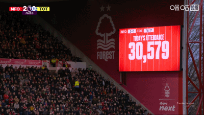 第50分钟,世界波!奥多伊吊射后点完成梅开二度,诺丁汉森林2-0热刺
